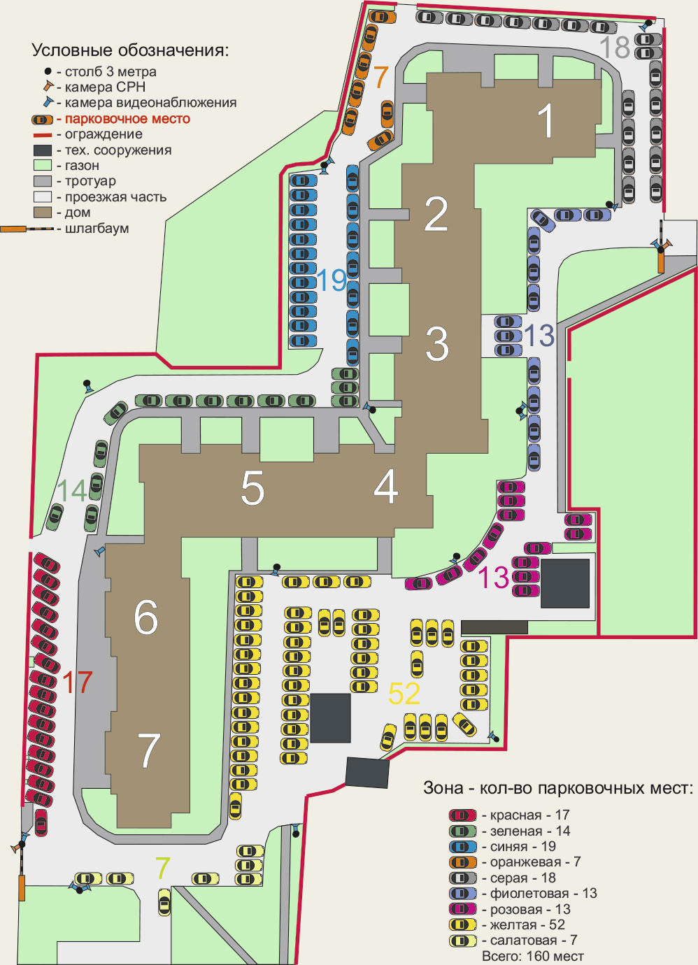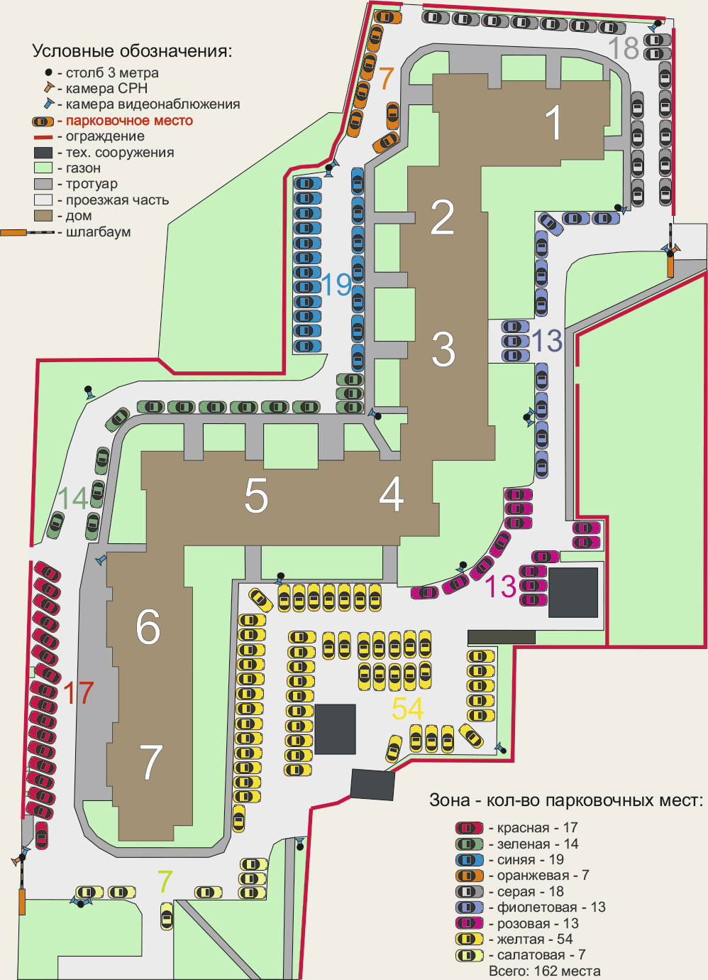 Предлагаемый план размещения автомобилей на парковочном пространстве: