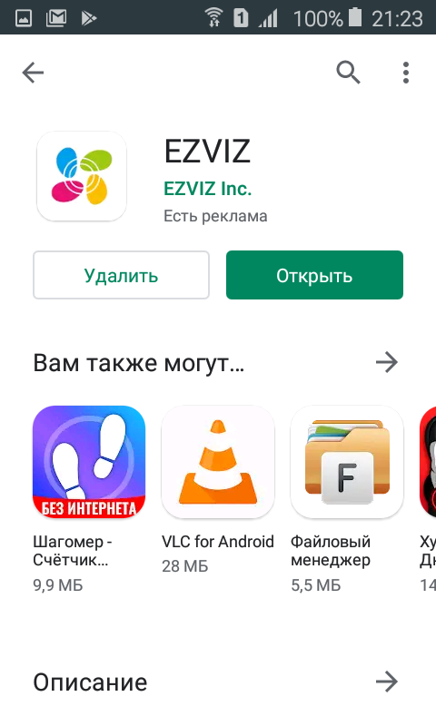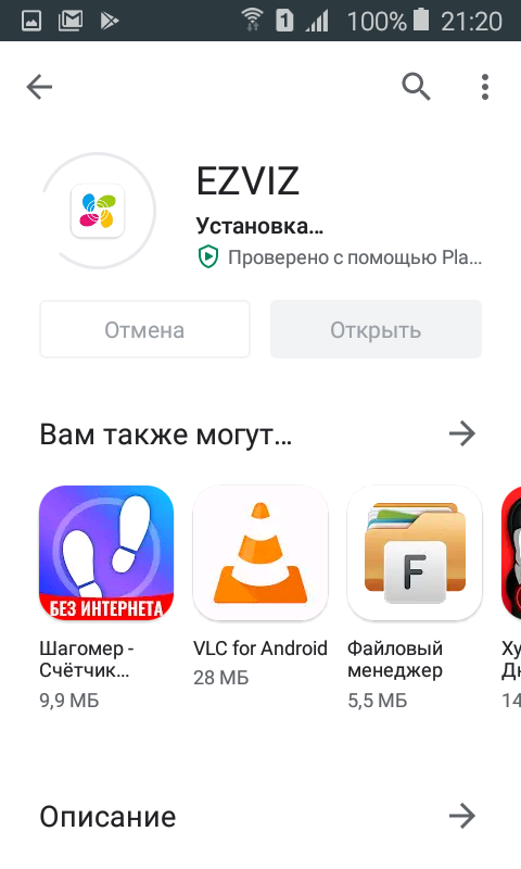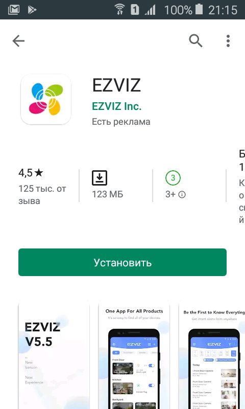 1. Открываем приложение «Play Маркет» или «App Store», в поиске ищем Ezviz и жмем на «Установить».