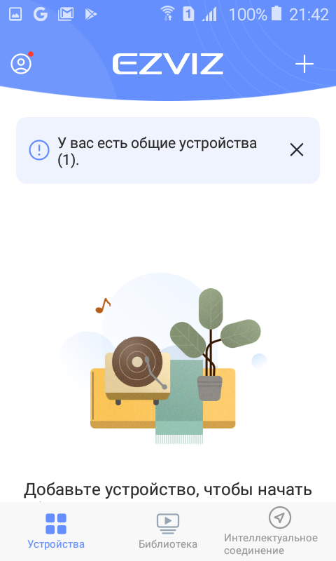 14. При следующем заходе в приложение EZVIZ, по истечении 24 часов, у Вас появится сообщение: "У вас есть общие устройства".